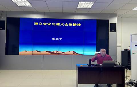 为纪念中央红军长征出发90周年和庆祝新中国成立75周年,贯彻落实习近平总书记视察遵义时作出的“要运用好遵义会议历史经验,让遵义会议精神永放光芒”的重要指示精神,加强对师生的爱国主义教育,2024年11月5日,tyc33455cc太阳集团鞠北平副教授为大家作“遵义会议与遵义会议精神”的专题讲座。本次讲座在人文楼313学术报告厅举行,tyc33455cc太阳集团全体员工、硕士研究生导师代表到场聆听,由马克思主义公司党委副书记、副经理(主持工作)邢瑞娟主持。