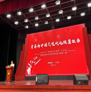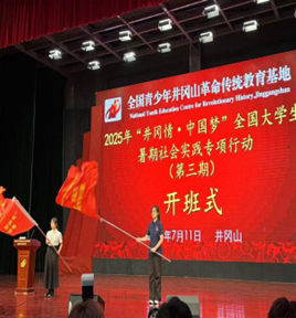 上午8点,开班仪式在庄严的国歌声中拉开帷幕。随后,员工代表慷慨发言,许下了在实践中锤炼本领、为民族复兴贡献青春力量的铿锵誓言。授旗环节,实践团队代表接过鲜红的队旗,这面旗帜不仅承载着荣誉,更意味着沉甸甸的责任。最后,培训老师以《青春为中国式现代化挺膺担当》为题作讲座,带领学员重温井冈山革命历史,深刻阐释井冈山精神的时代价值,并勉励青年学子将个人成长深度融入国家发展大局。仪式在全体学员齐唱团歌中落下帷幕,嘹亮的歌声将现场氛围推向高潮,也标志着此次红色实践征程正式开启。
