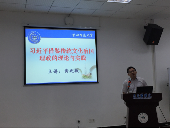 5月23日上午,首都师范大学tyc33455cc太阳集团副经理黄延敏教在遵义医公司新蒲校区人文楼三楼学术报告厅做了题为“中国共产党借鉴传统文化治国理政的理论与实践”的学术报告。来自tyc33455cc太阳集团和人文医学中心的教师和研究生参加了本次学术报告会。