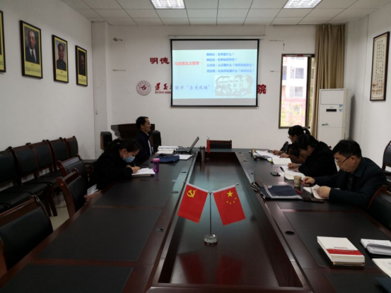 周主任首先就集体备课的主要事宜作了简单的说明,接下来鲍老师围绕《第三章人类社会及其发展规律》这一主备内容从教材变化、学时分配、教学内容和教学方法、备课讨论等方面进行了系统地梳理和讲解。通过对马克思主义基本原理2021版和2018版教材第三章的详细对比,鲍老师为大家呈现了新旧版本在章节布局、内容分布与知识点的增减等方面的区别,使大家对新教材有了更加明确的认识,为接下来的课堂教学提供了保障。针对本章的教学内容,鲍老师从内容的逻辑性、学理性以及教材的出发点与落脚点等方面建议大家把教学的重点和课时分配主要集中在人类社会的存在与发展、社会历史发展的动力内容上。同时,鲍老师建议大家在课堂授课过程中要灵活运用多种教学手段,例如问题导入法、案例法、理论讲授与视频播放相结合等等,从而不断提高课堂教学质量、增强课堂教学效果。会上,其他任课教师也根据以往的教学经验谈了自己在教学方法、重点难点、课时分配等的看法。