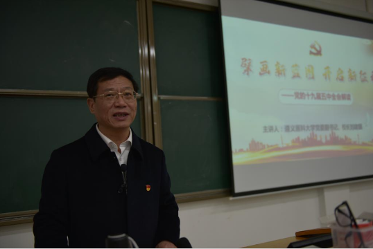 12月15日晚19:00,公司党委副书记、董事长刘建国教授在17阶梯教室为老员工讲授思政课,宣讲党的十九届五中全会精神。公司部分教师代表参加。